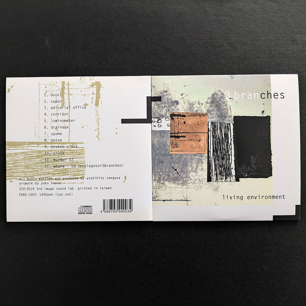 コラージュ 2022-81_83 『3braches』 CDジャケット「living environment」デザイン提供 Size B4 Materials アキーラ絵の具、墨汁、蜜蝋、紙、 Year 2022