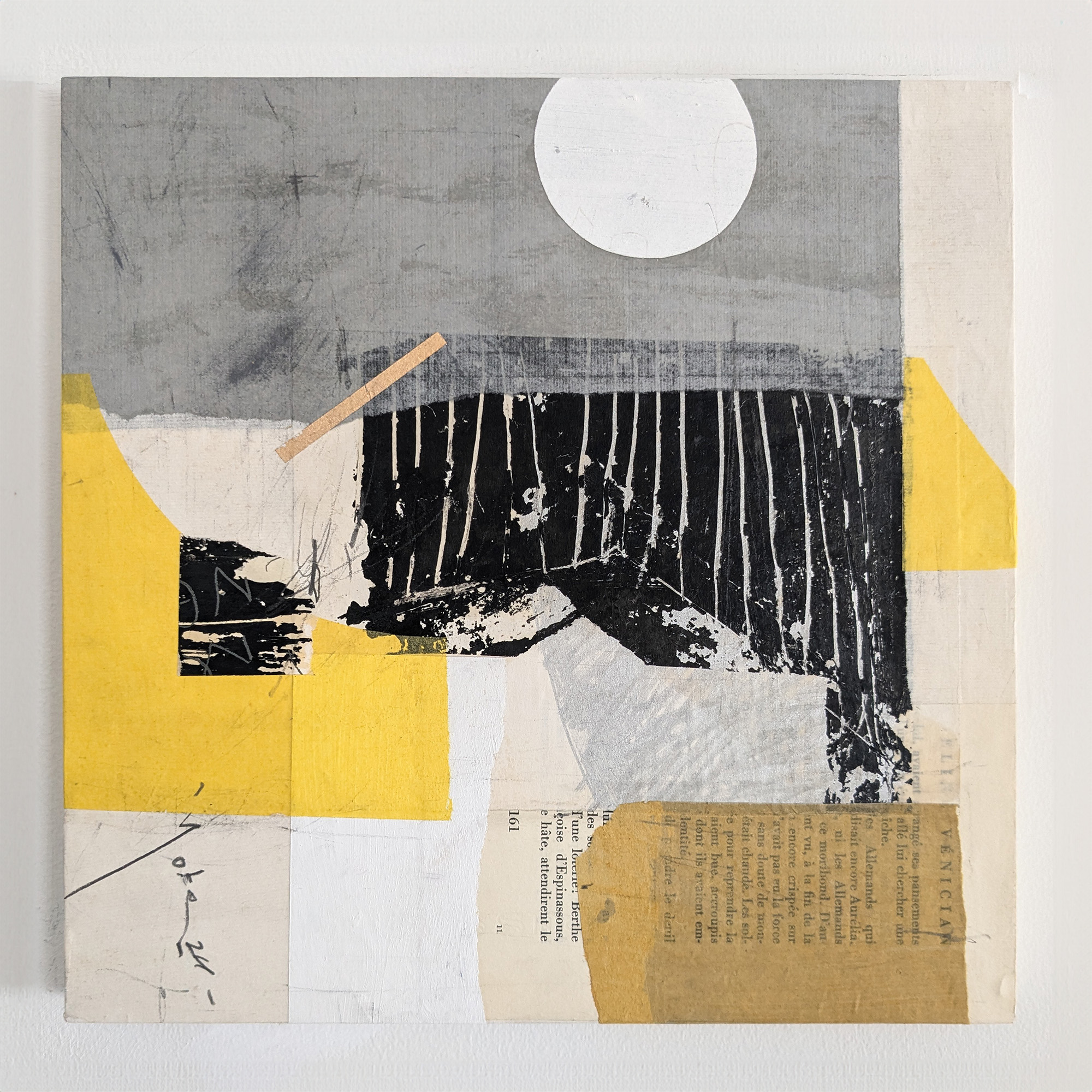 アクリル絵の具、墨汁、蜜蝋和紙、